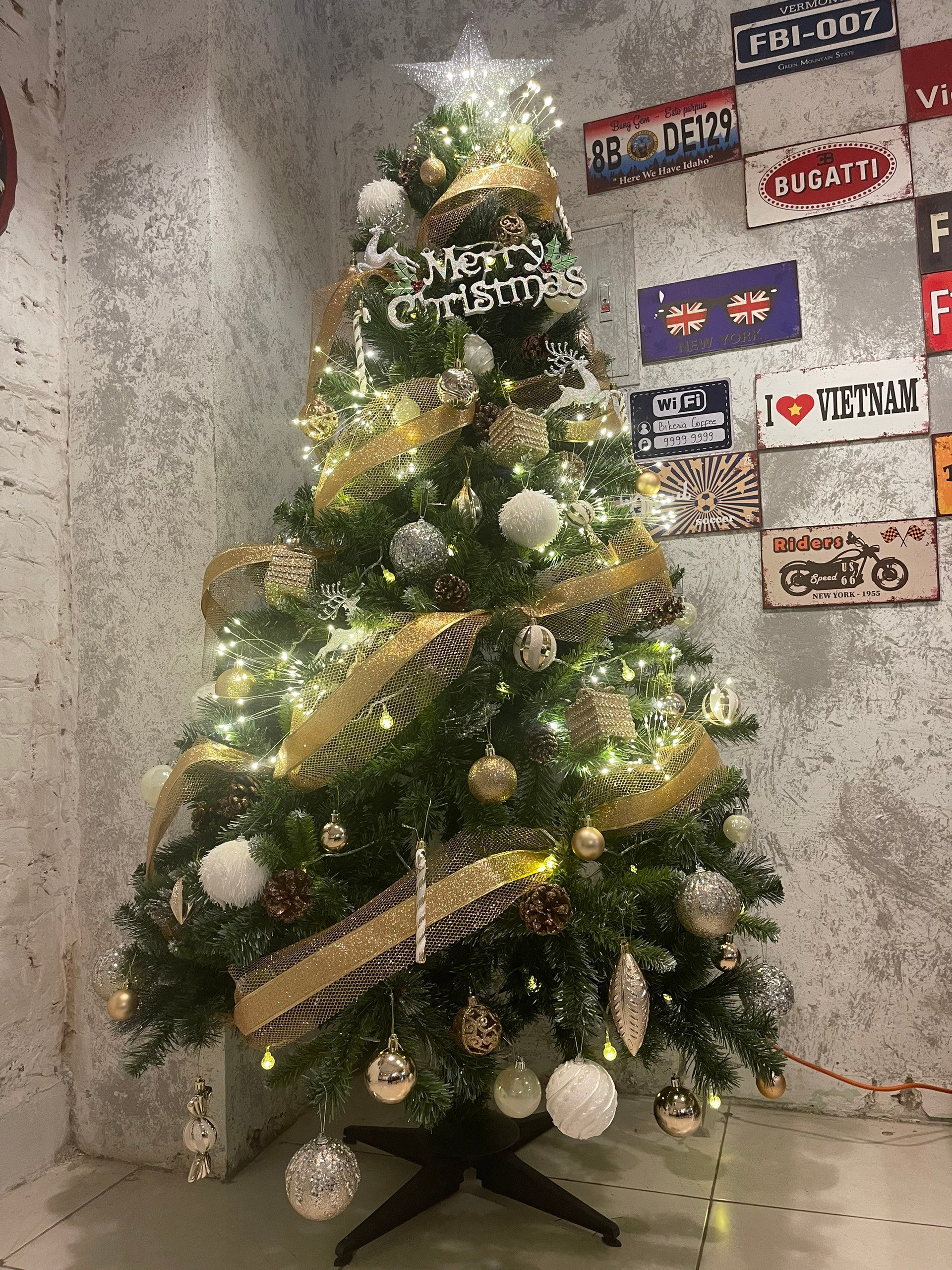 Cây thông Noel xanh dày lá 1m20 kèm phụ kiện trang trí cao cấp